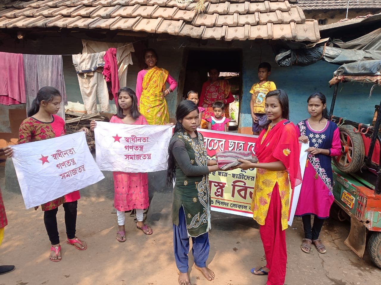 ঝাড়গ্রাম নিউজ ফ্ল্যাশ ডেস্ক : বুধবার এসএফআইয়ের ৫০ বর্ষ পূর্তি উপলক্ষে ৫০জন দুঃস্থ পড়ুয়াদের হাতে তুলে দেওয়া হল শীতবস্ত্র। এসএফআই বেলপাহাড়ী ও শিলদা লোকাল কমিটির যৌথ উদ্যোগে এই কর্মসূচী নেওয়া হয়েছিল। এলাকার পঞ্চাশটি পরিবারের দুঃস্থ ছাত্রছাত্রীদের বাড়ি বাড়ি গিয়ে মধুশ্রী মজুমদার, রজত ঘোষ, সুকদেব মণ্ডল সহ সংগঠনের কর্মীরা। কর্মসূচিতে উপস্থিত ছিলেন এসএফআই ঝাড়গ্রাম জেলা সম্পাদক মণ্ডলীর সদস্য সোমনাথ মাহাত, রাজেশ কর্মকার। প্রচণ্ড ঠাণ্ডায় শীতবস্ত্র হাতে পেয়ে খুশি পড়ুয়ারা।