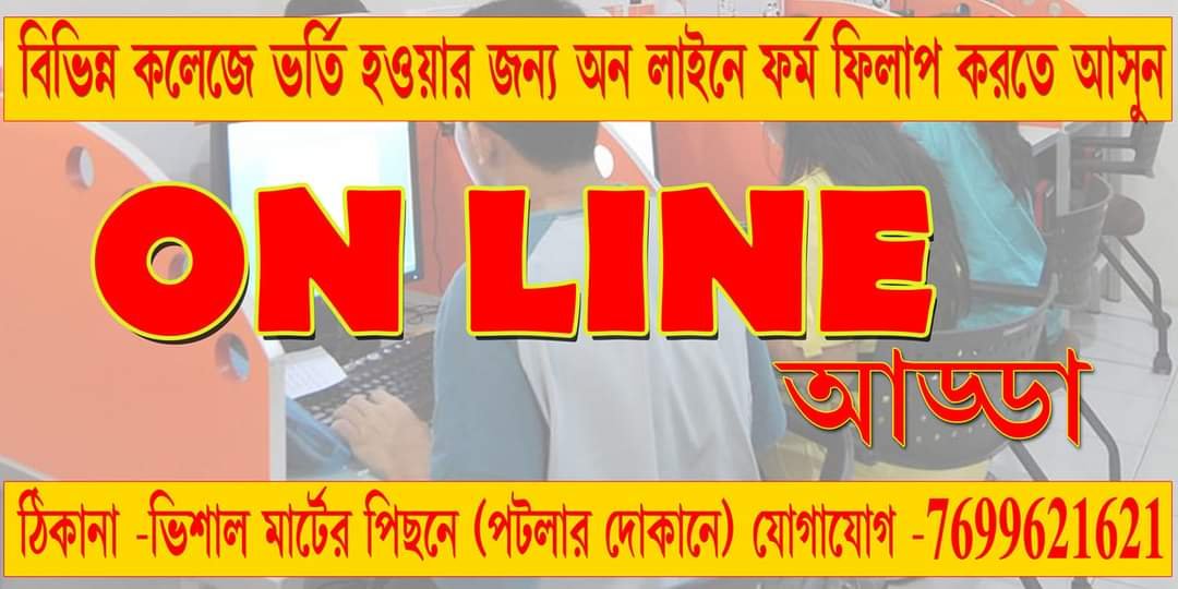 ঝাড়গ্রাম নিউজ ফ্ল্যাশ ডেস্ক : ‘অনলাইন আড্ডা’তে পড়ুয়াদের জন্য কম খরচে শুরু হয়েছে ভর্তির ফর্ম ফিলাপ। রাজ্যে ১০ আগস্ট থেকে শুরু হয়েছে কলেজ গুলিতে ভর্তির জন্য ফর্ম ফিলাপ। ঝাড়গ্রাম জেলা সহ রাজ্যের বিভিন্ন কলেজে খুবই কম খরচে ফর্ম ফিলাপের সুযোগ এনেছে ঝাড়গ্রাম বিশাল মেগা মার্টের পাশে ‘অনলাইন আড্ডা’ সাইবার ক্যাফে। সেই সঙ্গে বিশেষ দুঃস্থ পড়ুয়াদের জন্য ঝাড়গ্রাম নিউজ ফ্ল্যাশের উদ্যোগে ‘অনলাইন আড্ডার’ সহযোগিতায় দুঃস্থ পড়ুয়াদের ভর্তির ফর্ম ফিলাপে দেওয়া হচ্ছে বিশেষ ছাড়! আর সেই সুযোগ নিতেই দ্রুত যোগাযোগ করুন ‘অনলাইন আড্ডা’ সাইবার ক্যাফেতে।