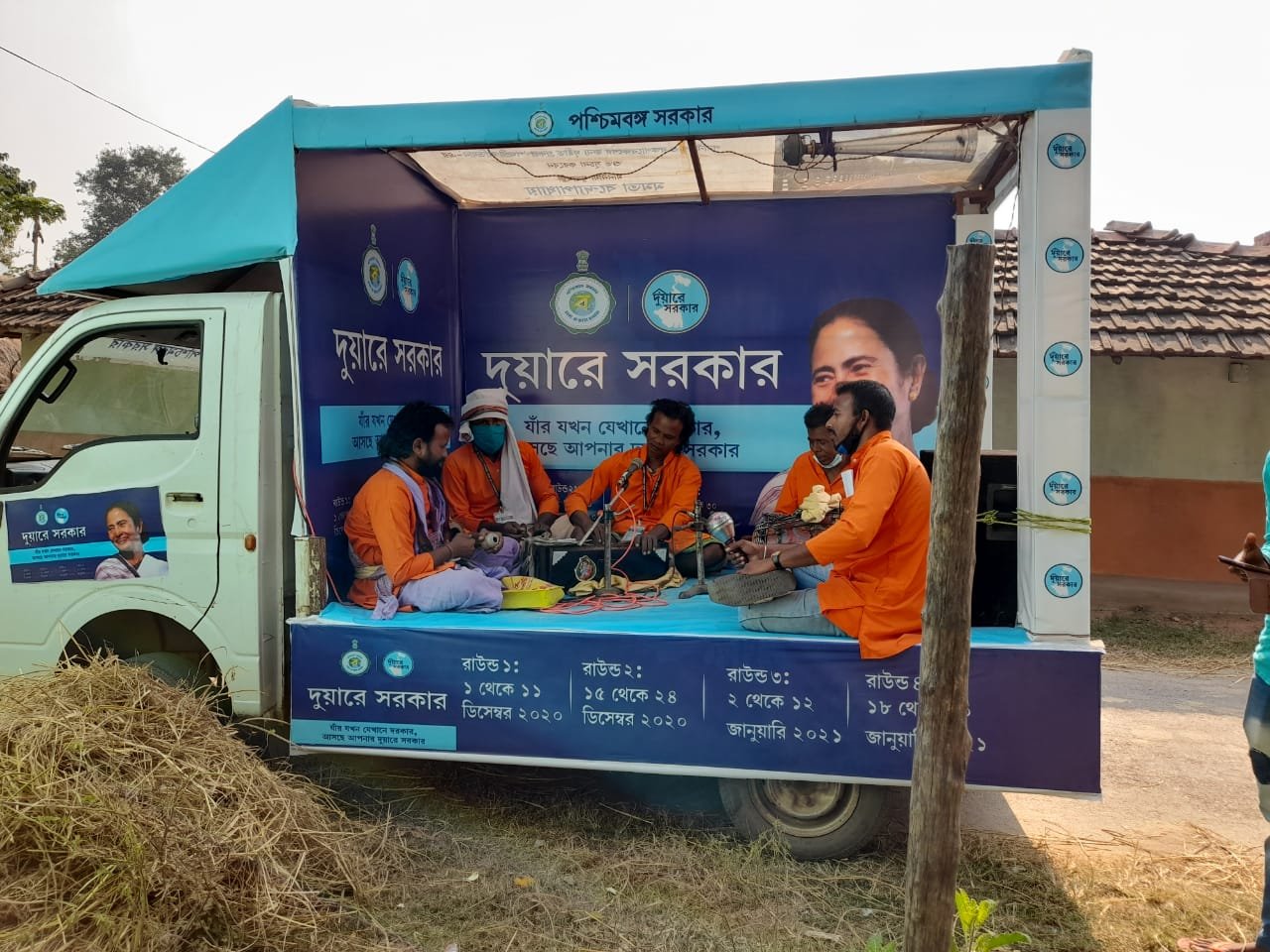 ঝাড়গ্রাম নিউজ ফ্ল্যাশ ডেস্ক :মুখ্যমন্ত্রীর অনুপ্রেরণায় রাজ্য জুড়ে শুরু হয়েছে ‘দুয়ারে সরকার’ কর্মসূচি। আর সেই কর্মসূচির প্রচার চলছে মাইকিং এর মধ্যে দিয়ে। সাধারণ মানুষকে রাজ্য সরকারের প্রকল্পগুলি নিয়ে সুবিধা পাওয়ার জন্যই শুরু হয়েছে এই কর্মসূচি। ক্যাম্পের মাধ্যমে অঞ্চলে অঞ্চলে শুরু হয়েছে এই কর্মসূচির। তাই লোকগানের মধ্য দিয়ে মাইকিং করে সাধারণ মানুষদের জানা হচ্ছে। ঠিক এমনই চিত্র দেখা গেল ঝাড়গ্রাম জেলার বিনপুর ২নং ব্লকের কাঁকড়াঝোড় এলাকায়