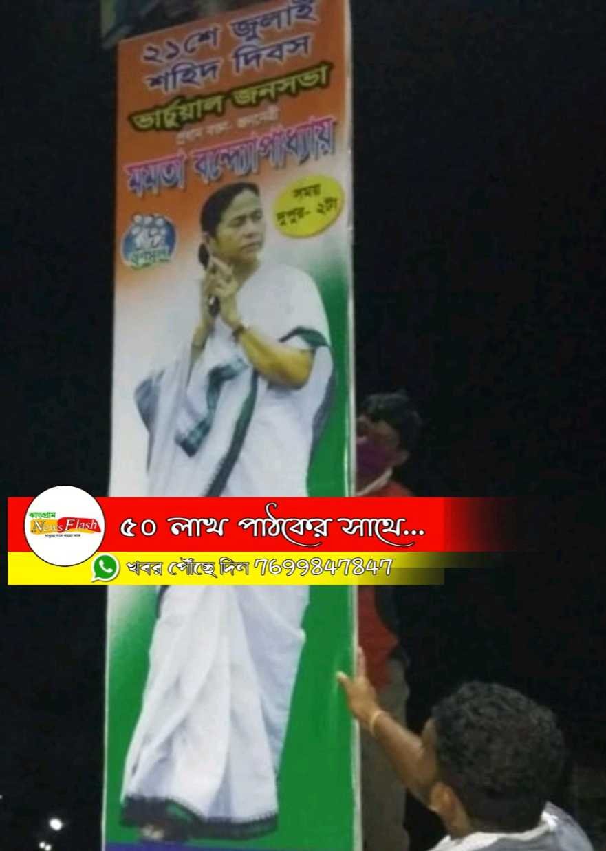 ঝাড়গ্রাম নিউজ ফ্ল্যাশ ডেস্ক : শহীদ দিবসের আগের রাতে শহর জুড়ে বসল তৃণমূল নেত্রী মমতা বন্দ্যোপাধ্যায়ের ছবি। শহর যুব তৃণমূলের সাধারণ সম্পাদক উজ্জ্বল পাত্রের উদ্যোগে উদ্যোগে ঝাড়গ্রাম শহরের পেপারমিল মোড় থেকে জামদা পর্যন্ত লাগানো হয়েছে বিশাল আকৃতির ফ্লেক্স। সারদাপীঠ স্কুল, সাবিত্রী মন্দির, সেটেলমেন্ট মোড়, শপিং মল, পাঁচমাথা মোড়, ওভার ব্রিজ, শিবমন্দির, সাবিত্রী সিনেমা হল মোড়ে লাগানো হয় ছবি।ঝাড়গ্রাম শহরে তৃণমূল সুপ্রিমো মমতা বন্দ্যোপাধ্যায়ের ছবি সে আকারে নেই। দলীয় মহাসচিব পার্থ চট্টোপাধ্যায় লোকসভা ভোটের আগে থেকে বার বার বলেছিলেন। শহরের বুকে জননেত্রী মমতা বন্ধ্যোপাধ্যায়ের ছবি লাগাতেও দলীয় বৈঠকে তিনি ক্ষোভ প্রকাশ করেছিলেন। কার্যত দেড় বছর পর ২১ শে জুলাইয়ের আগে মহাসচিবের নির্দেশ অনেকটাই বাস্তবায়িত হল।