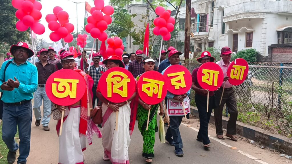 জেএনএফ ডেস্ক : রবিবার ঝাড়গ্রাম শহরে রাজ্য কো-অর্ডিনেশন কমিটির অধিকার যাত্রার মিছিল সংগঠিত হয় । ঝাড়গ্রাম শহরের বলরামডিহি এলাকা থেকে অধিকার যাত্রার মিছিল শুরু হয় । রাজ্য কো-অর্ডিনেশন কমিটির অধিকার যাত্রার মিছিল ঝাড়গ্রাম শহর পরিক্রমা করে । জানা গিয়েছে, মিছিল শেষে ঝাড়গ্রাম শহরের পাঁচ মাথার মোড়ে পথসভা রয়েছে রাজ্য কো-অর্ডিনেসন কমিটির। উপস্থিত রয়েছেন রাজ্য কো-অর্ডিনেশন কমিটির সাধারণ সম্পাদক বিশ্বজিৎ গুপ্ত চৌধুরী সহ রাজ্যের অন্যান্য নেতৃত্বরা এবং ঝাড়গ্রাম জেলা কমিটি নেতৃত্বরা এবং বামফ্রন্টের একাধিক সংগঠনের নেতৃত্ব ও কর্মী সমর্থকরা ।