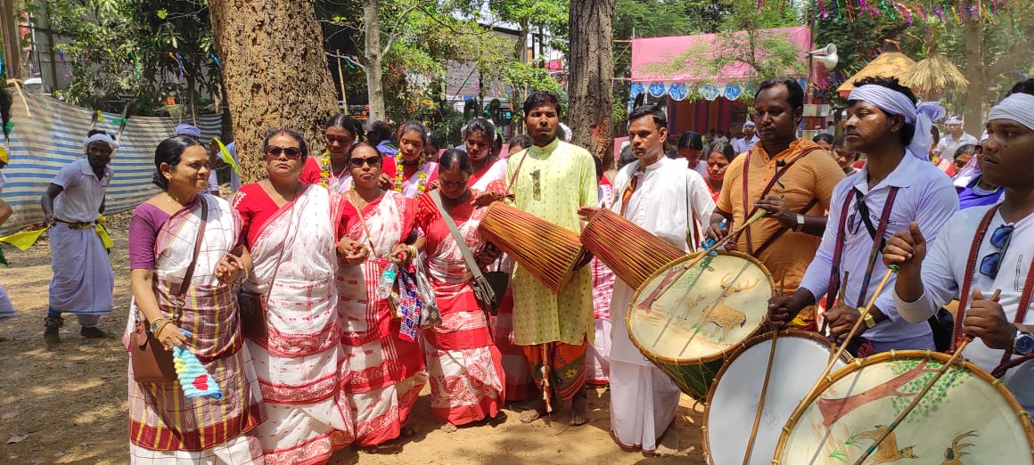 অরূপ কুমার মাজী,জেএনএফ,ঝাড়গ্রাম : রবিবার ঝাড়গ্রাম জেলা শহরের রবীন্দ্রপার্কে আদিবাসী সমাজের পক্ষ থেকে পালন করা হলো ‘বাহা মা: মড়ে বঙ্গা’ উৎসব ।প্রথা অনুযায়ী এদিন শাল গাছে ঘেরা রবীন্দ্র পার্কের জাহের থানে সমাজের পক্ষ থেকে পূজা অর্চনা করা হয়। সকালবেলায় জেলা শহরের জুবলী মার্কেট থেকে একটি ৱ্যালি রবীন্দ্রপার্কে এসে পৌঁছায় তারপরই শুরু হয় এই উৎসব। ধামসা মাদলের তালে তাল মিলিয়ে লালপাড় শাড়ি পরে শুরু হয় আদিবাসী মহিলাদের নাচ।এই ধর্মীয় অনুষ্ঠানে সমাজের অসংখ্য মানুষের পাশাপাশি ঝাড়গ্রাম লোকসভা কেন্দ্রের তৃণমূল প্রাথী কালিপদ সরেন এবং বিজেপির প্রাথী প্রণত টুডু উভয়ই উপস্থিত ছিলেন।জুবলী মার্কেট থেকে রবীন্দ্রপার্ক পর্যন্ত ৱ্যালিতে তৃণমূল এবং বিজেপি দুই প্রার্থীকে উপস্থিত ছিলেন।এদিন দুই প্রার্থীকে ধামসা মাদল বাজাতে দেখা যায়। প্রথমে তৃণমূলের প্রার্থী বাজানোর পর বিজেপি প্রাথীর মাদল বাজানোর সময় উৎসব প্রাঙ্গনে উপস্থিত হন রাজ্যের বনদপ্তরের রাষ্ট্রপ্রতিমন্ত্রী বিরবাহা হাঁসদার মা তথা প্রাক্তন বিধায়িকা চুনিবালা হাঁসদা।এরপরই বিজেপি প্রাথী প্রণত টুডুর মাদলের তাল তাল মিলিয়ে মন্ত্র্রীর মাকে নাচতে দেখা যায়। ঘটনাটিকে সৌজন্যতার আখ্যা দিলেও জেলার রাজনৈতিক মহলের একাংশ তা মানতে নারাজ। বিধানসভা ভোটার আগে তৎকালীন তৃণমূলের মহাসচিব পার্থ চট্টোপাধ্যায়ের হাত ধরে তৃণমূলে যোগদান করেছিলেন চুনিবালা হাঁসদার কন্যা বিরবাহা হাঁসদা এবং তৃণমূলের টিকিটে জিতে তিনি বর্তমানে রাজ্যেরশাসক দলের একজন মন্ত্রী এবং মমতা বন্দ্যোপাধ্যায় এর অতন্ত্য স্নেহভাজন অপরদিকে মন্ত্রীর মা একজন প্রাক্তন বিধায়িকা এবং লড়াকু ঝাড়খন্ডী নেত্রী।চার বছর আগে মেয়ে বিরবাহা তৃণমূলে যোগদান করলেও মা চুনিবালা এখনো পর্যন্ত কোনো দলে যোগদান করেননি এবং বর্তমানে ঝাড়খন্ডী কার্যকলাপ থেকে ও তিনি নিজেকে দূরে রেখেছেন। ‘বাহা মা: মড়ে বঙ্গা’ কথার অর্থ হলো নতুনকে আহ্বায়ান করা ,এই উৎসবেই মন্ত্রীর মা উপস্থিত হয়ে বিজেপি প্রাথীর মাদলের তালে তাল মিলিয়ে নাচের মধ্যে দিয়ে কি আগামী দিনে জেলার রাজনীতিতে তাহলে কি কোনো নতুন সমীকরণের ইঙ্গিত দিতে চাইলেন তা নিয়ে প্রশ্ন তুলতে শুরু করেছে জেলার রাজনৈতিক মহল।বিষয়টি নিয়ে বিজেপি প্রার্থী প্রণত টুডু বলেন “এতে রাজনীতির কোনো ব্যাপার নেই, এটা একটা সামাজিক অনুষ্ঠান।যোগ দিতে পেরে ভালো লাগছে। এরকম পরিবেশ ও সংস্কৃতি যেন চিরকাল বজায় থাকে “।